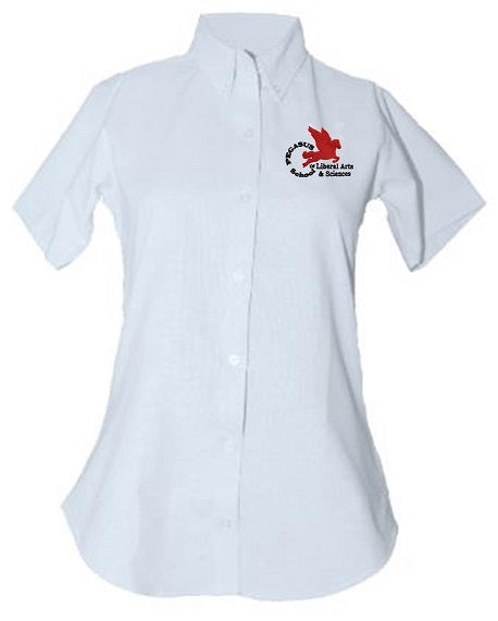 JUNIORS SHORT SLEEVE TAPERED OXFORD W/ LOGO