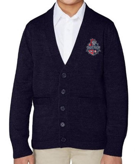 YOUTH UNISEX V-NECK CARDIGAN SWEATER W/LOGO