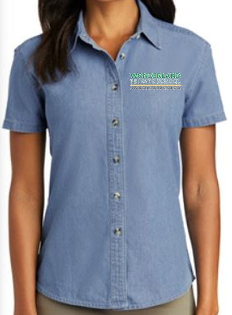 WOMENS SHORT SLEEVE VALUE DENIM SHIRT WITH LOGO (WONDERLAND PRIVATE SCHOOL STAFF)